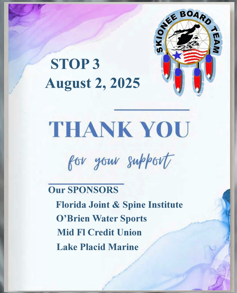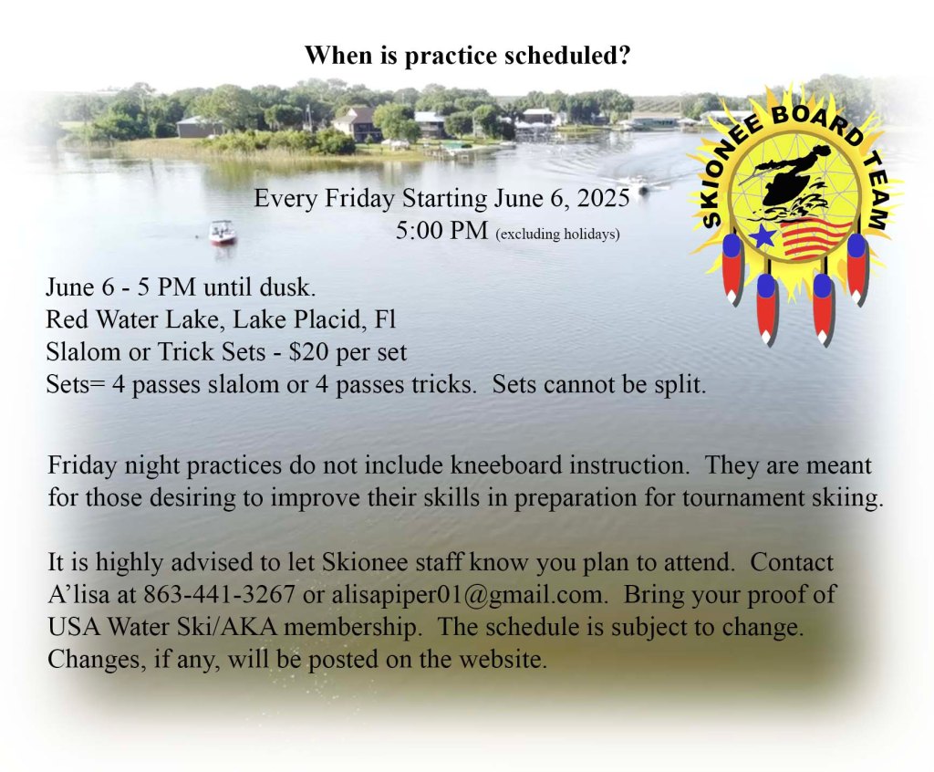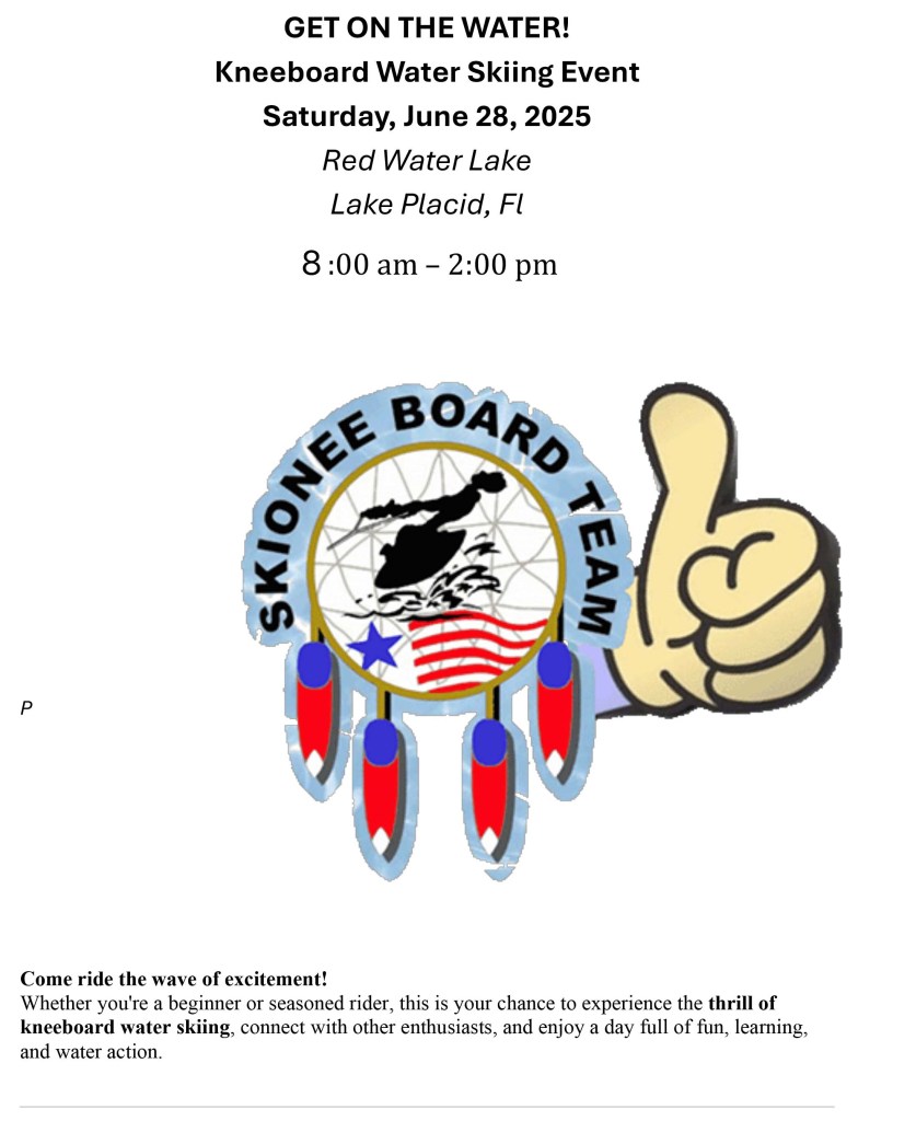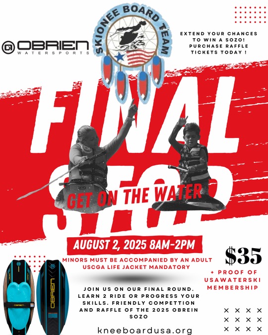 Don’t forget to purchase your raffle ticket. $20 gives you a chance to win an O’Brien Sozo Kneeboard. No need to be present to win. Drawing 8-2, 2025.
